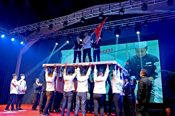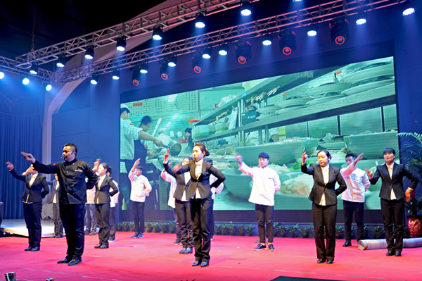 迪尼斯酒店開元店表演的團(tuán)隊(duì)風(fēng)采《眾志成城·從頭再來》是公司員工紀(jì)律、業(yè)務(wù)、才藝、禮儀與團(tuán)隊(duì)精神的綜合展示,獲得二等獎(jiǎng),獎(jiǎng)勵(lì)2000元;